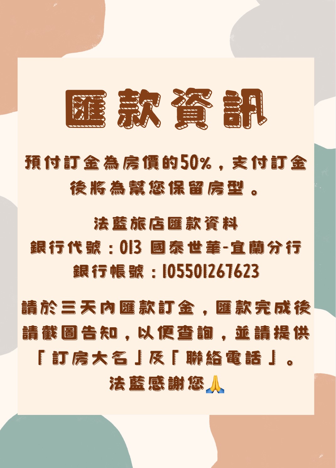 * 住宿時,請記得出示您的國民身份證以便我們辦理入住登記。
